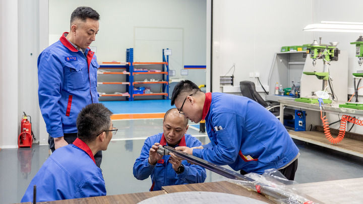 长春市见真精密机械制造有限公司厂房内,工作人员在查看部件精度。新华每日电讯记者 段续摄